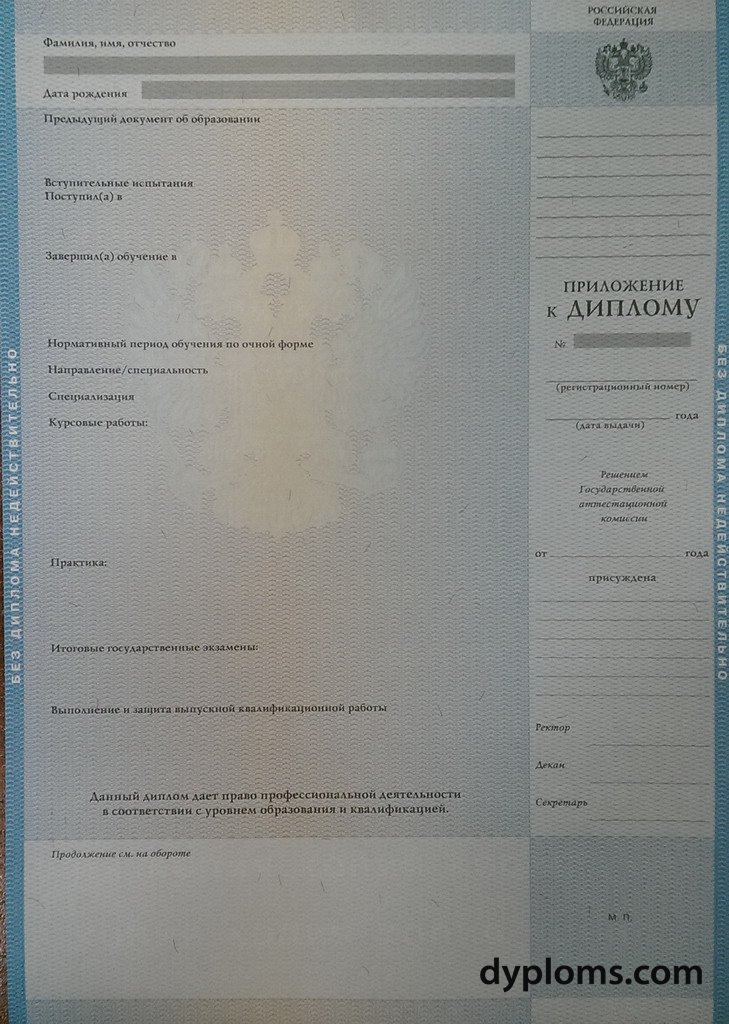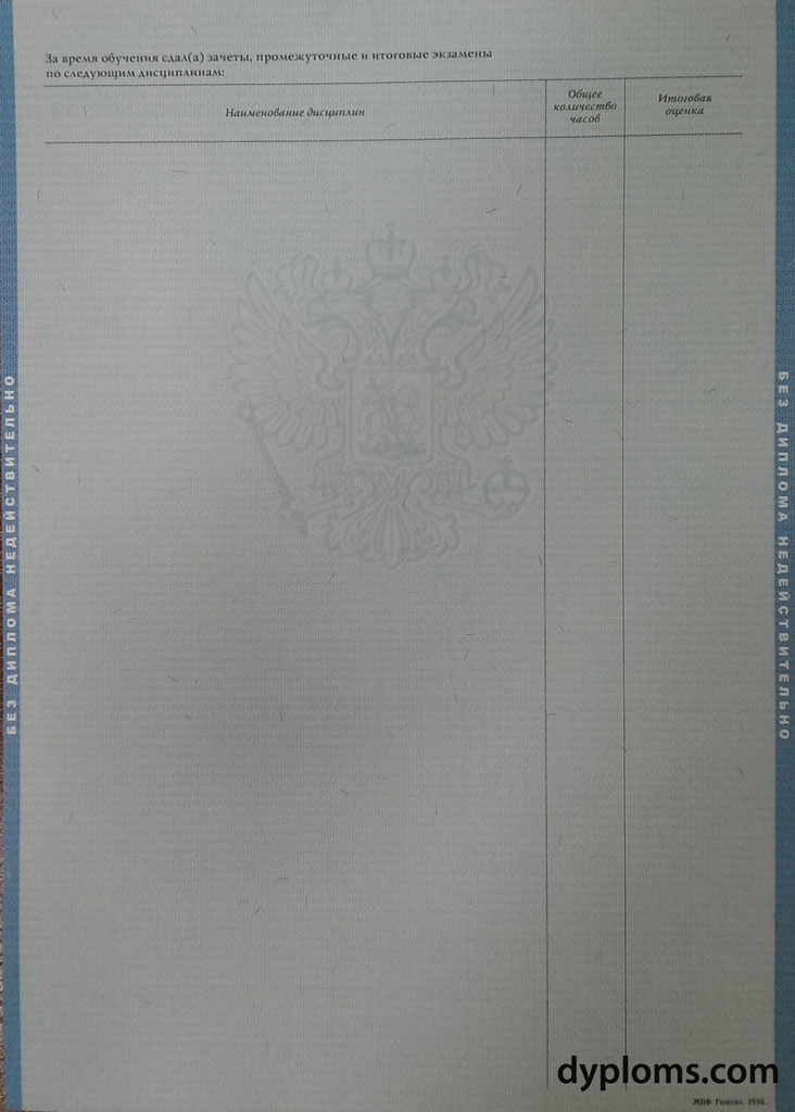 - Диплом актуального образца с официальными государственными символами и защитными элементами.